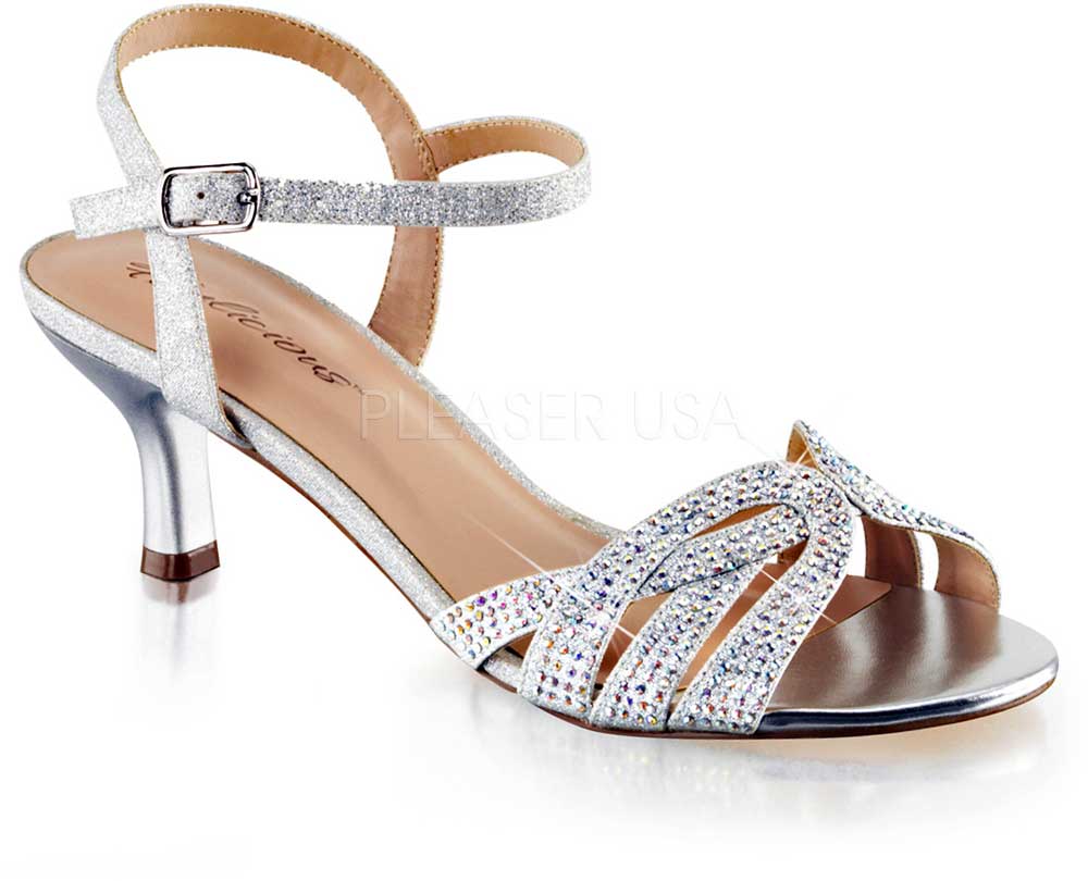 Dash features a crystal embellished toe strap on a kitten heel with an adjustable ankle strap.