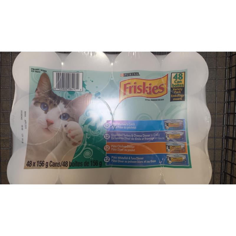 Friskies offers a huge variety of wet food, a small selection of dry food, and treats.