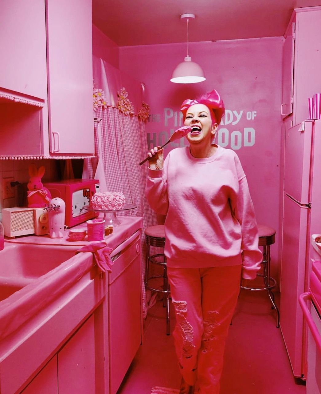 Images. In 1980, on her birthday, kitten kay sera put on an outfit that was pink from head to toe. Kitten kay sera is known worldwide as the pink lady of hollywood because she has only worn the color pink exclusively for 40 years & everything she owns is p.