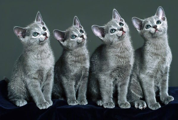Pics. The russian blue cat is recognizable by his beautiful green eyes and a striking blue coat that has a lustrous sheen. They are so adorable and cute!