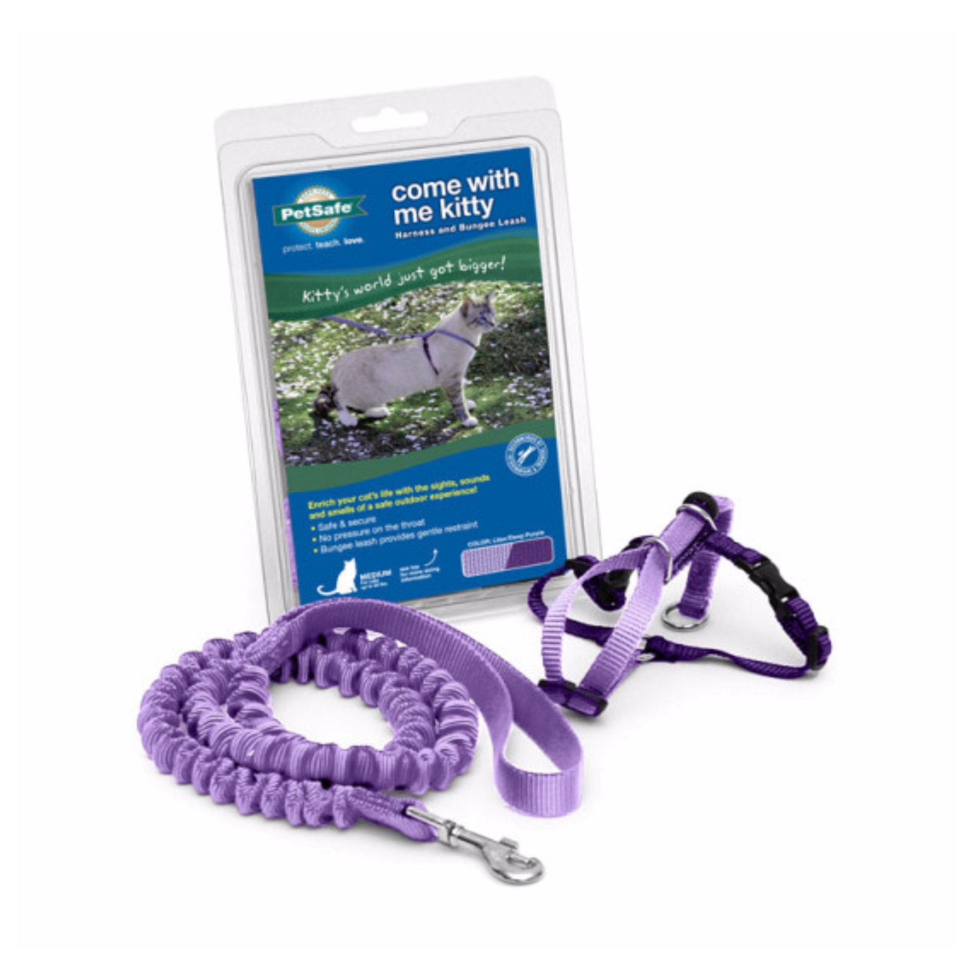 Harness and leash for cats traveling to and from kennels groomers or vet visits. Even though no leash is included, this harness is designed to channel the leash pressure to the chest and shoulders. The come with me kitty harness & bungee leash allows you to share enjoyable walks, exercise and playtime outside your home. Harnesses and leashes are both safety devices with a series of wraps or buckles that wrap around the neck and midsection of your cat.