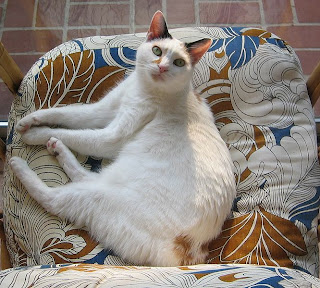 Angora, manx (tuxedo), siamese, british shorthair (orange tabby).